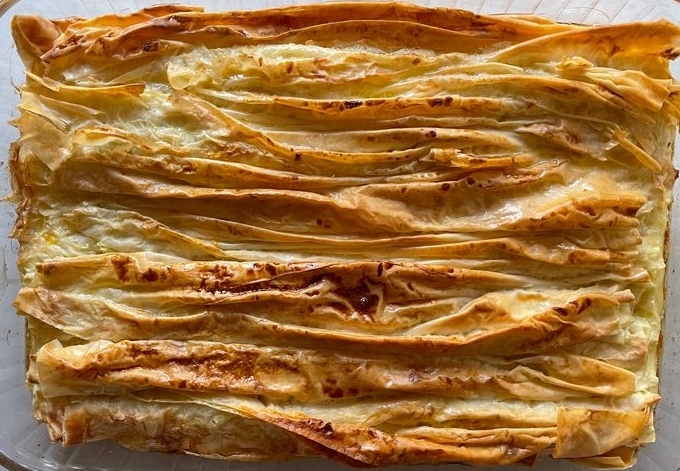 Kataifi is a special pastry dough consisting of delicate, thin strands made out of shredded phyllo dough. Found in the freezer section.