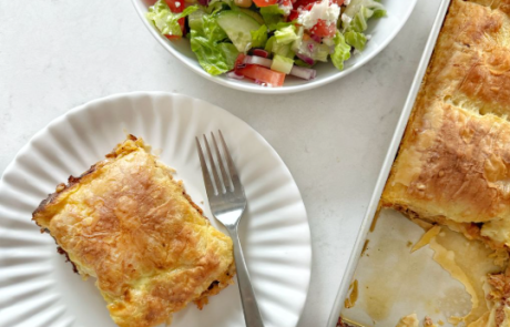 - Spread the meat mixture evenly over the phyllo.
