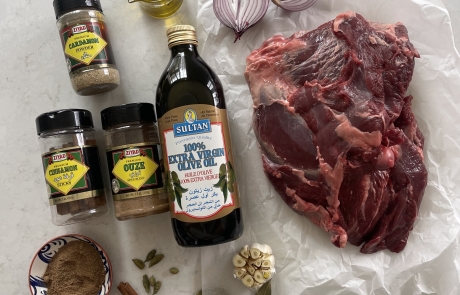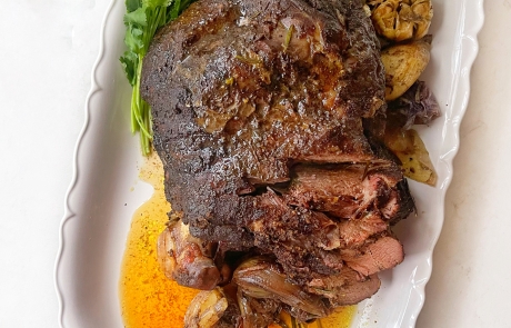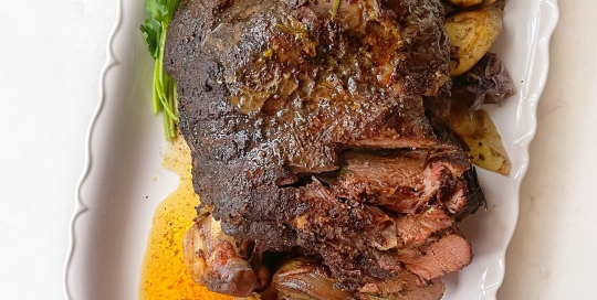 A slow-roasted leg of lamb seasoned with aromatics and cooked until tender and flavorful. Perfect as a centerpiece for family meals and special gatherings.